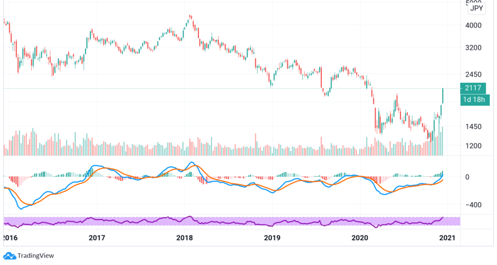 重工業はどこもコロナショック後、株価を戻せない展開が続いていたので、ある意味バリュー株の逆襲としては良い入りどころかもしれません。