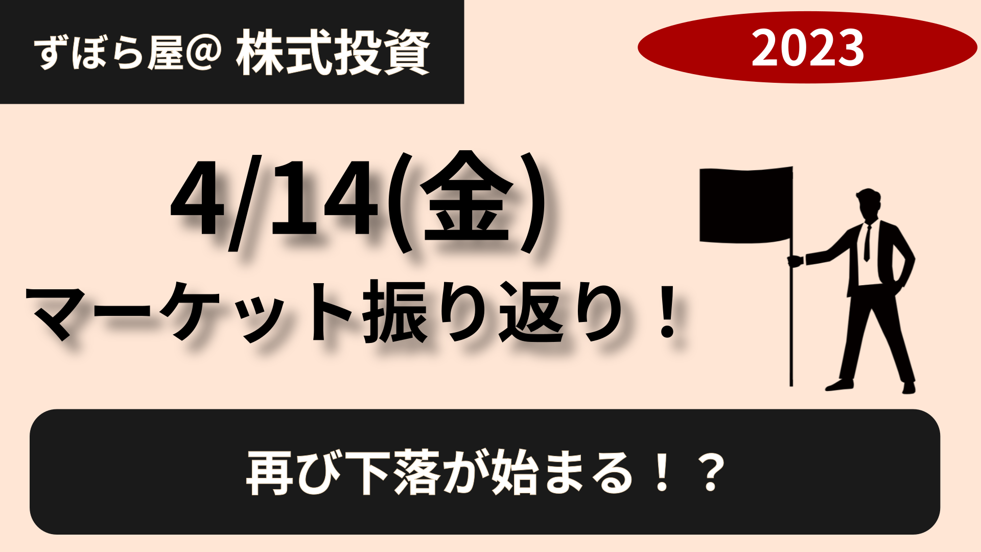 4月14日の米国株式市場において、ダウ平均株価は前日比143ドル22セント(0.4%)下落し、3万3886ドル47セントで取引を終えました。FRBのウォラー理事が一段の利上げに前向きな姿勢を示したことから、利上げ長期化による景気冷え込み懸念から幅広い銘柄に売りが出ました。また、同日発表された決算が好調だった銀行株には買いが入りました。3月の小売売上高が市場予想を下回ったことから、消費が下振れし景気が減速するとの見方も売りにつながりました。ナスダック総合株価指数は、前日比0.4%下落しました。ハイテク株比率が高いナスダック指数では、新興EVのルーシッド・グループや電気自動車(EV)のテスラ、動画配信のネットフリックスなどが売られました。一方、金融のJPモルガン・チェースは7%以上上昇しました。