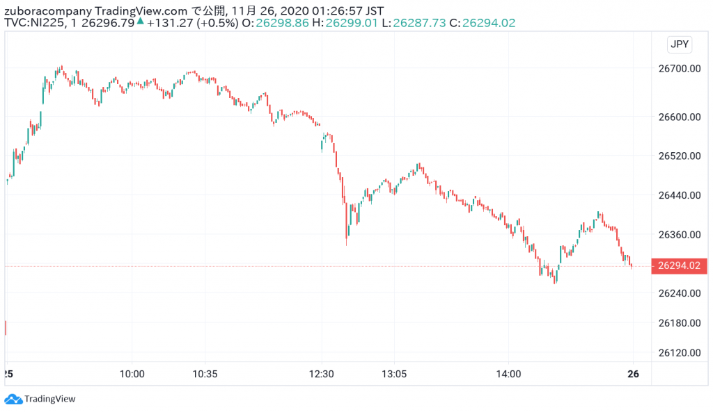 さて、この勢いで11/25(水)の日経はぶっ飛ぶかと思いきや、どうやら様子がおかしいです。