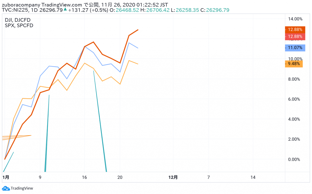 されど11/24(火)は日経ぶっ飛び、さらに世界の指数もぶっ飛びダウ平均は市場最高値をつけました。
